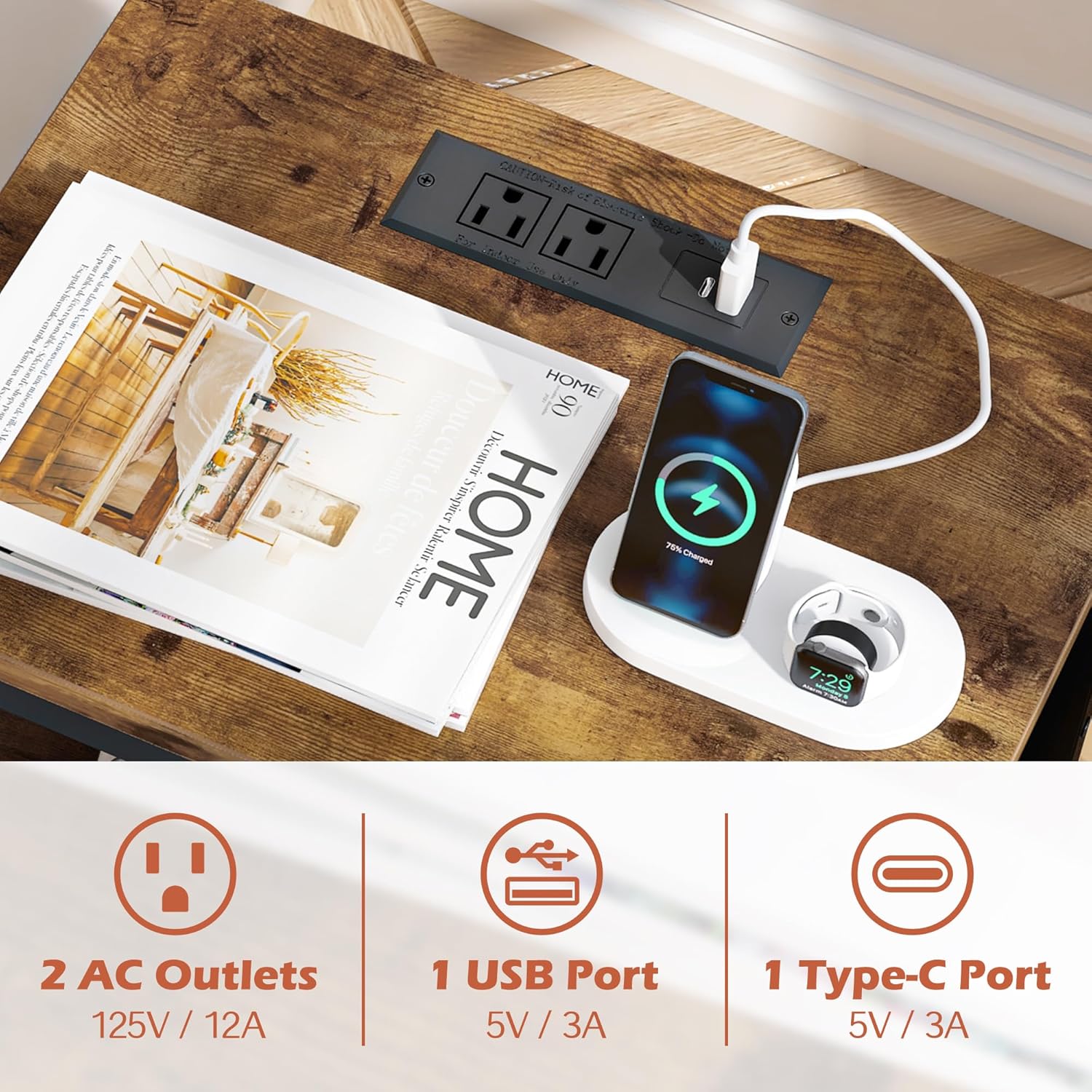 Introducing the SUPERJARE Nightstand with Charging Station – the perfect blend of style and functionality for your bedroom or living room. This sleek and modern nightstand features a built-in charging station, allowing you to conveniently charge your devices while you sleep.
